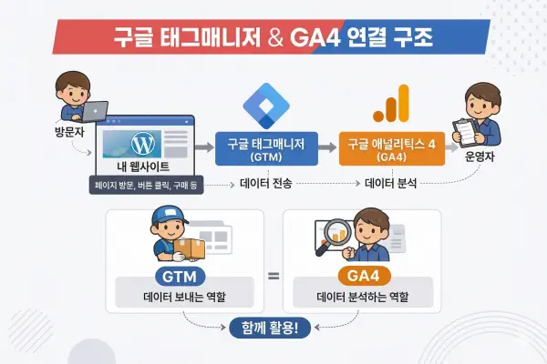 구글 태그매니저는 웹사이트의 코드를 직접 수정하지 않고도 다양한 태그(스크립트나 추적 설정)를 컨테이너에 추가하여 관리할 수 있는 도구입니다.