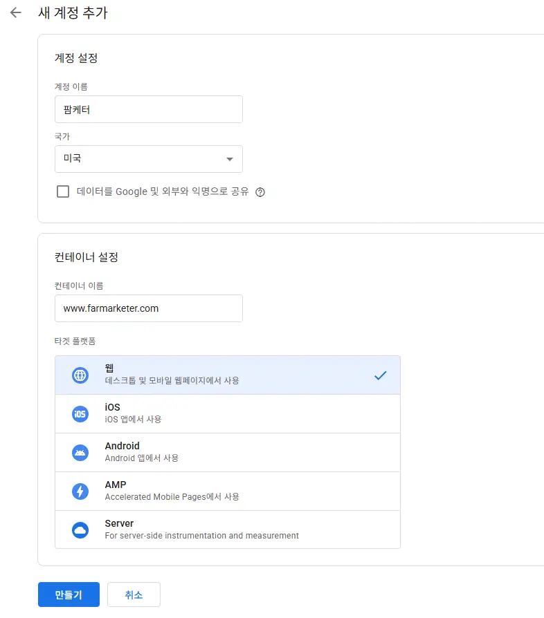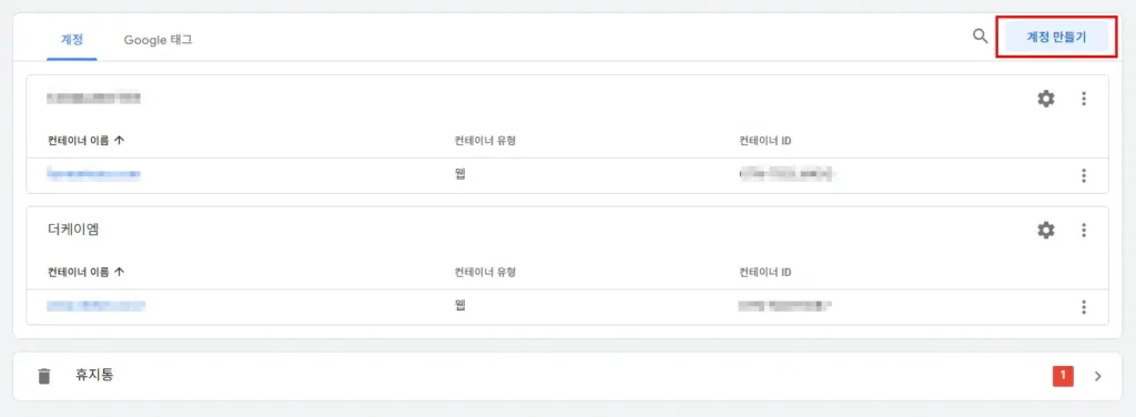 1. 태그매니저 GTM에서 계정 및 컨테이너 만들기
