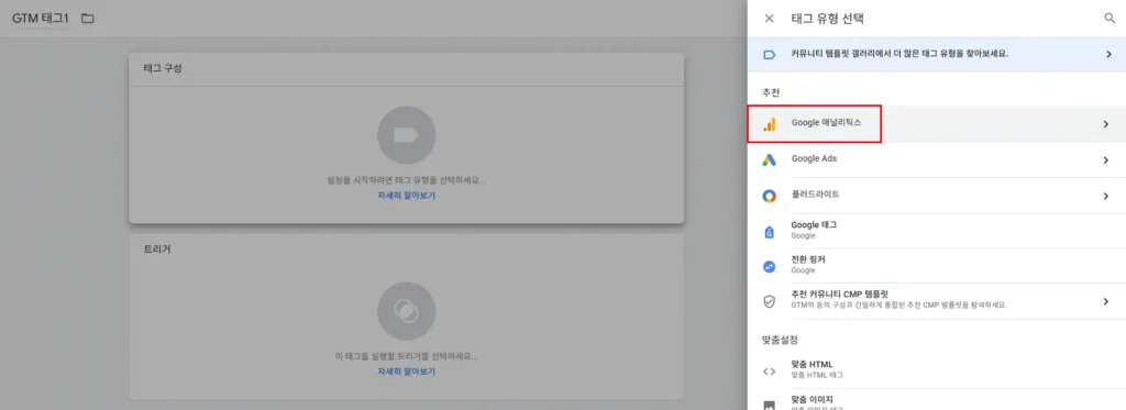 3. 태그 유형 선택 > Google 애널리틱스 > Google 태그