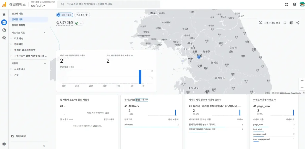 GA4만 설치해도 추가 작업없이 자동수집을 통해 기본적인 방문자 수, 페이지뷰, 유입경로 등을 확인할 수 있습니다.