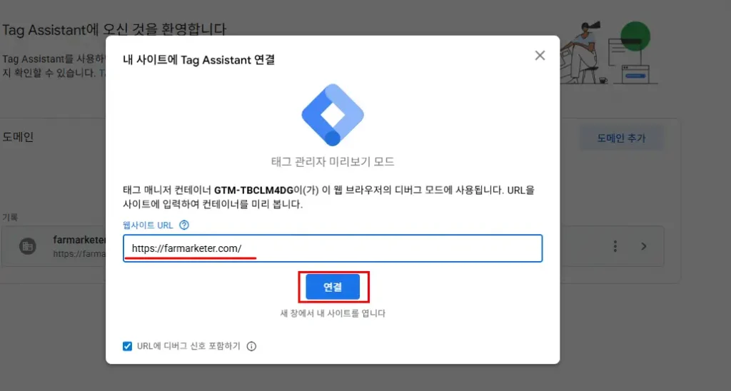2. Tag Assistant에서 디버그 모드로 컨테이너 미리보기 활성화