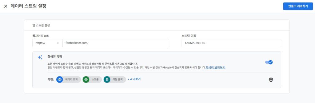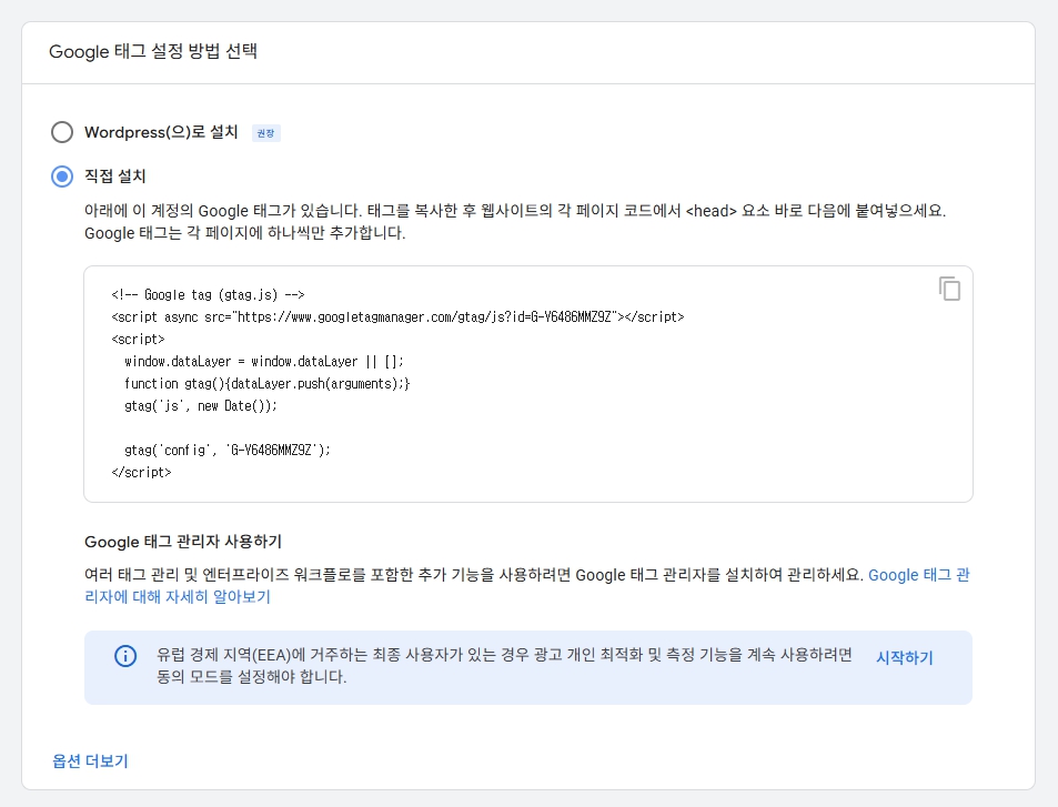 설정이 완료되면 태그를 티스토리, 워드프레스, 웹사이트 등에 Google 태그 스크립트를 직접 설치하면 앞서 ‘GTM 없이 GA4만 사용할 수는 없을까?’ 목차에서 설명했듯이 자동수집 기능을 활용할 수 있습니다.