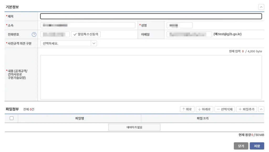 사전규격공개 확인 및 의견등록 방법