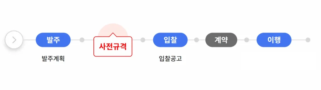 가장 먼저 수요기관이 구매나 용역 필요성을 정리하는 단계인 발주(발주계획) 수립입니다 이후 사전규격을 공개하게 되는데 이때에는 발주기관이 정한 규격서, 과업 내용서, 제안 요청서 등의 내용을 미리 공개하고 업체의 의견을 받습니다.