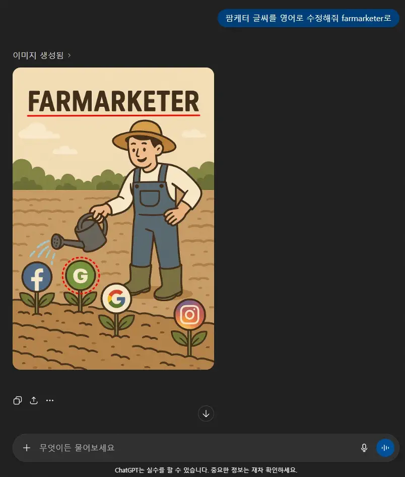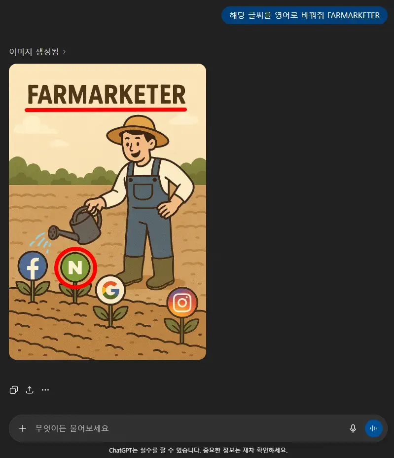 프롬프트만으로 글씨를 영어로 수정해달라하니 원형(점선) 표시까지 N에서 G로 바뀌는 현상이 생겼습니다.